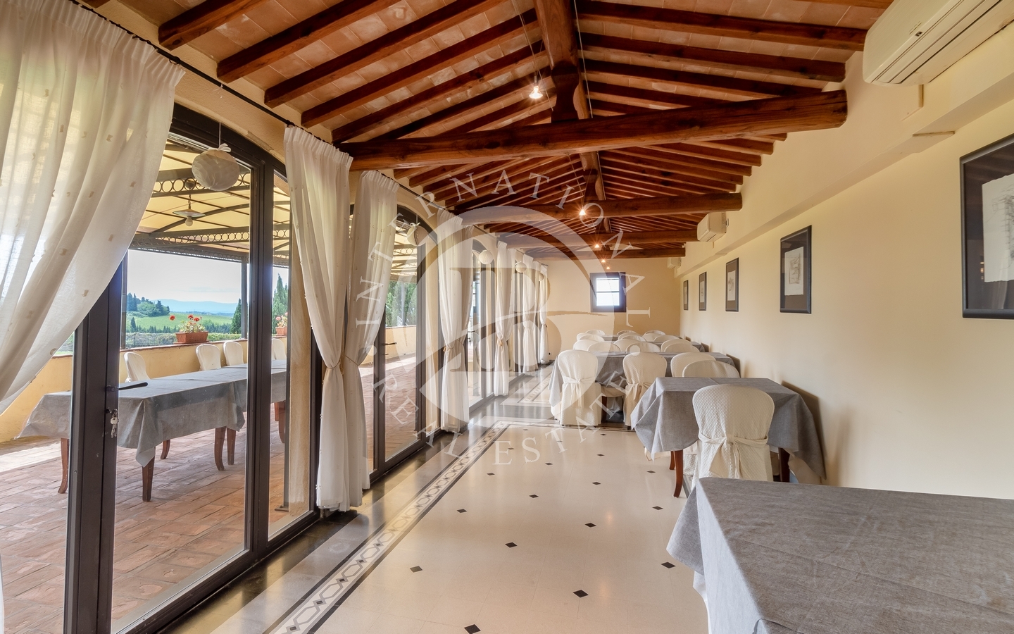 La villa, risalente all’epoca leopoldina, si estende per oltre 3.100 mq e ospita 35 eleganti camere e suite, tutte dotate di aria condizionata, area soggiorno, bagni privati finemente accessoriati e, in alcune unità, angolo cottura indipendente. Gli ambienti, curati nei minimi dettagli, coniugano l’autenticità dell’architettura toscana con comfort moderni, regalando agli ospiti un’atmosfera calda e accogliente. Le aree comuni sono ampie e luminose, ideali per accogliere gli ospiti in un contesto esclusivo, mentre la possibilità di creare una SPA e un’area convegni amplia ulteriormente il potenziale della struttura.