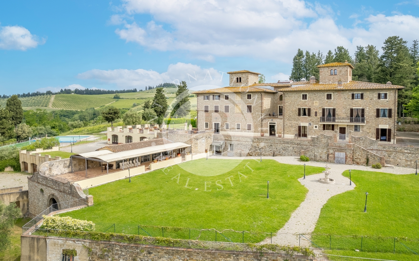 domina una delle vallate più suggestive del Chianti. Il panorama spazia fino alle torri di San Gimignano, mentre Firenze e Siena si raggiungono in breve tempo. Un luogo senza tempo, immerso nella bellezza e nella storia toscana