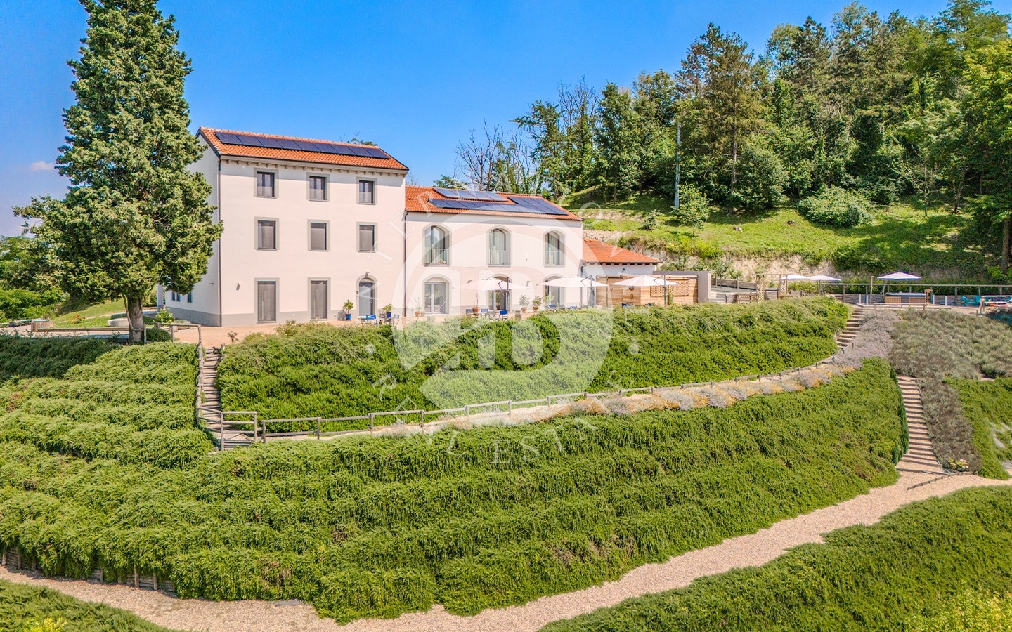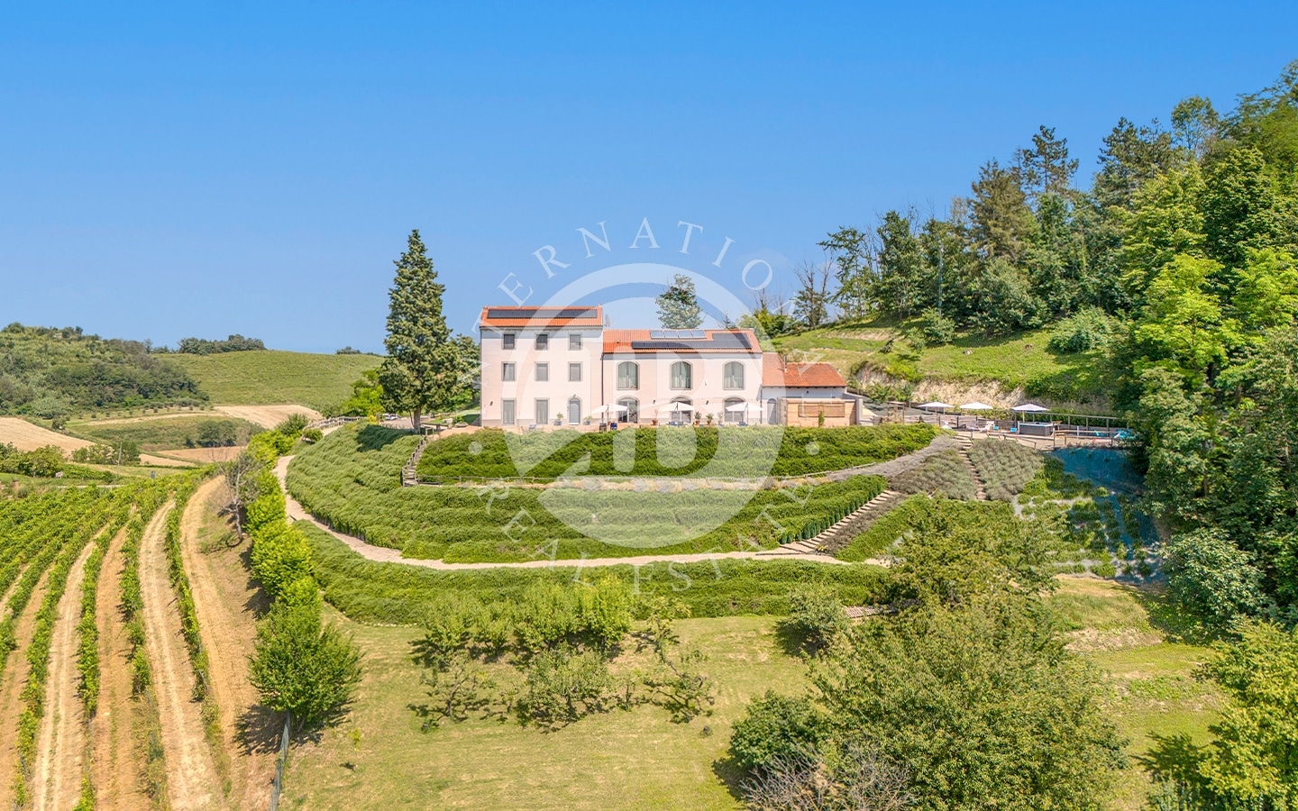 La proprietà è immersa in circa un ettaro di terreno, circondata da vigneti accuratamente curati che trasmettono un senso di pace e serenità. I panorami offrono una vista su dolci colline, vigneti che si estendono a perdita d’occhio e boschi incontaminati creando un’atmosfera unica di tranquillità. La jacuzzi esterna, situata in una zona privata del giardino, offre un'esperienza di lusso, permettendo di immergersi nell’acqua con vista panoramica sui vigneti.