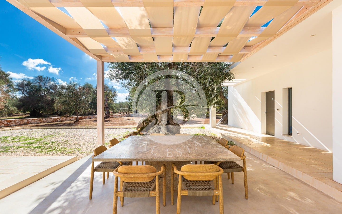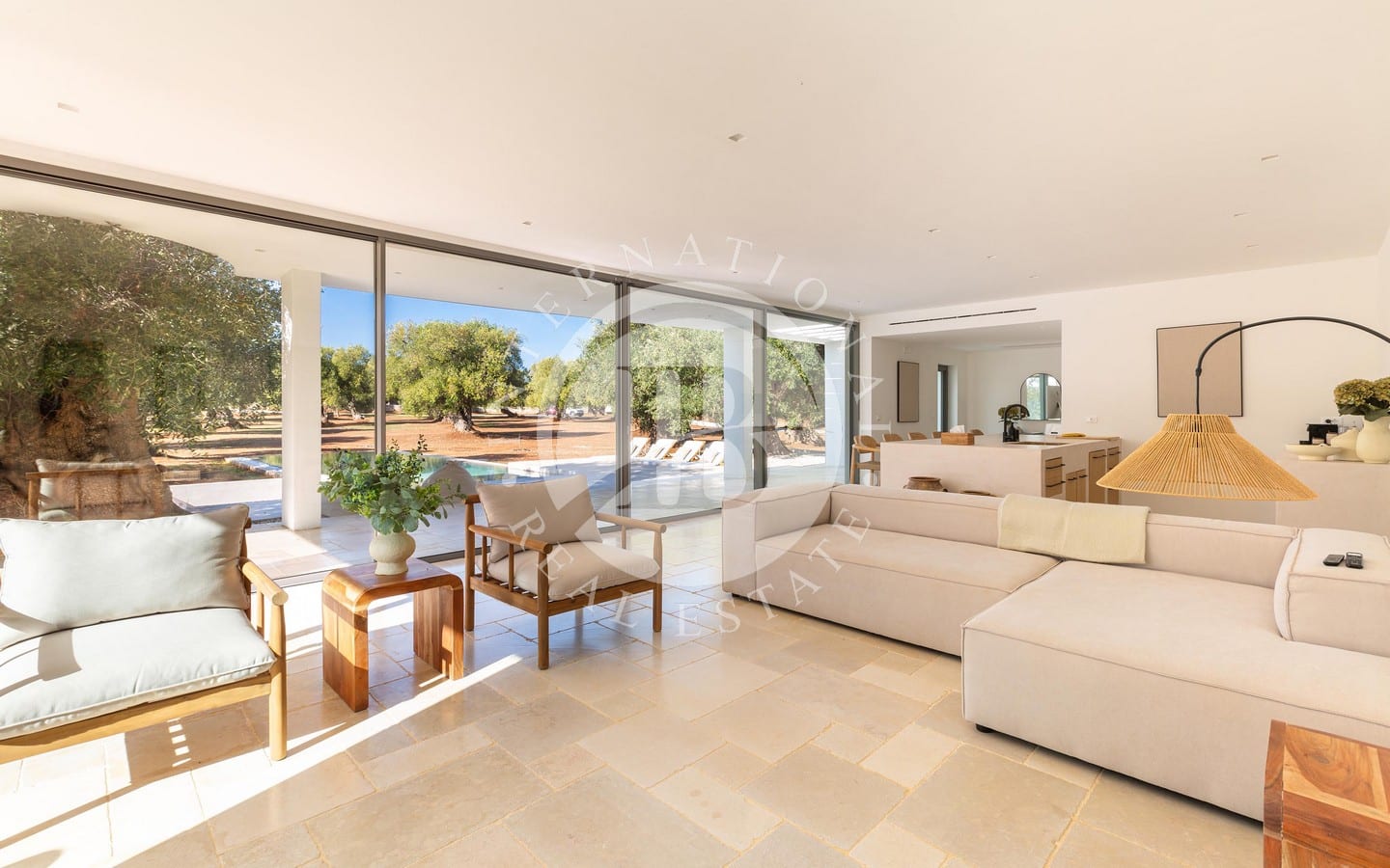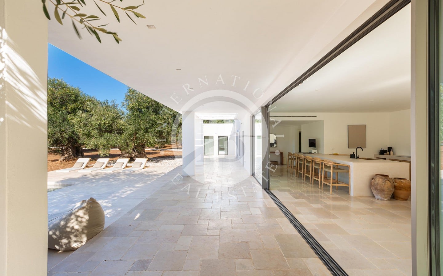 Недавно построенная, вилла выделяется гармонией своих помещений, характеризующихся мягкими цветами, дизайнерской мебелью и изысканными местными материалами, которые идеально сочетаются с окружающим ландшафтом. Светлая гостиная открытой планировки дополнена большими раздвижными окнами с видом на сад и бассейн, кухонным островом из каменной кладки и травертина, полами из полированного камня Trani и деревянной мебелью ручной работы. Спальная зона включает главную спальню с ванной комнатой, украшенной плетеной и деревянной мебелью.