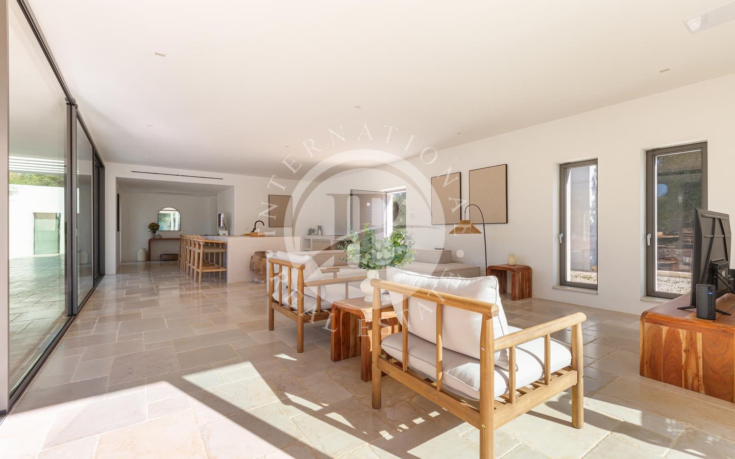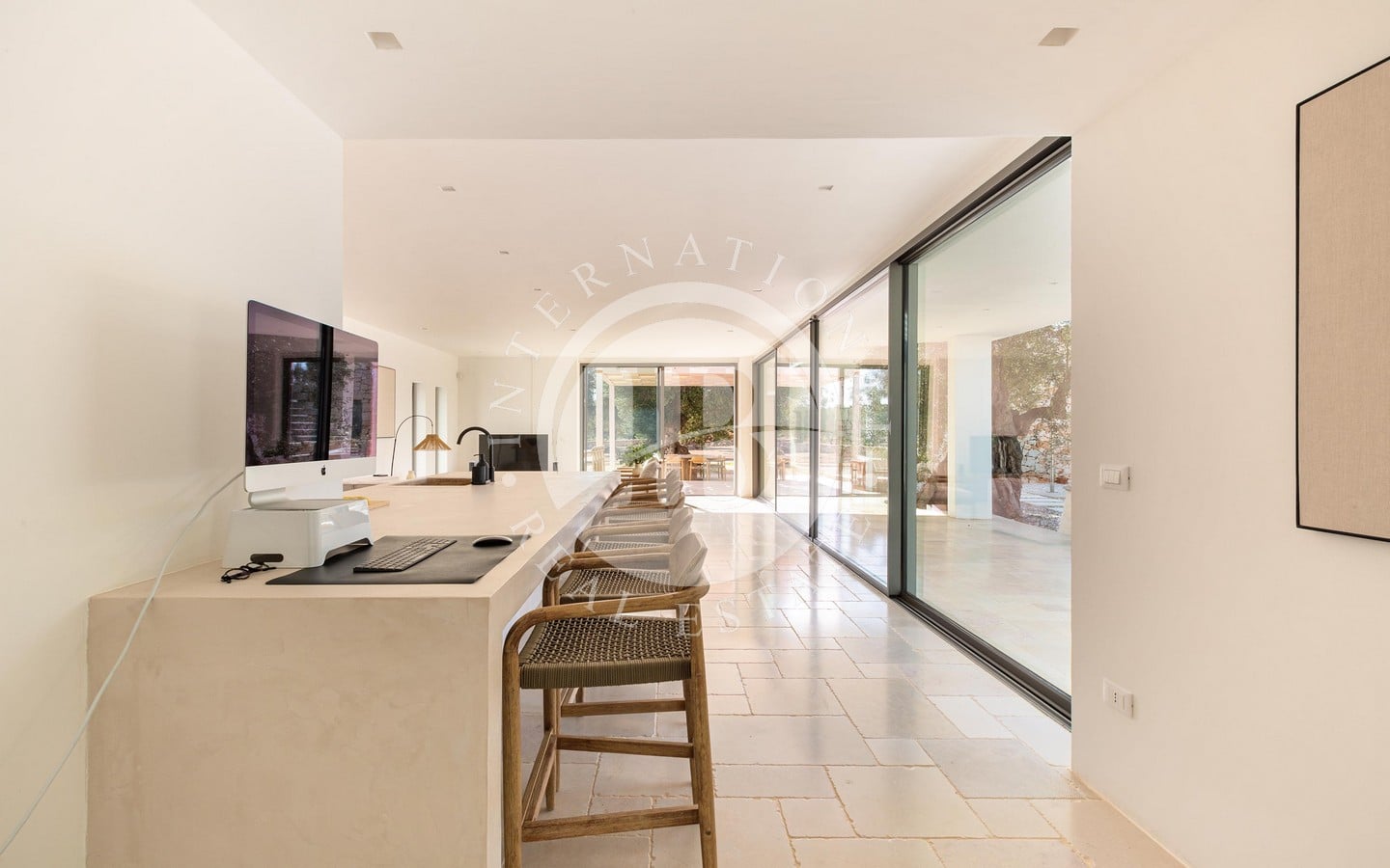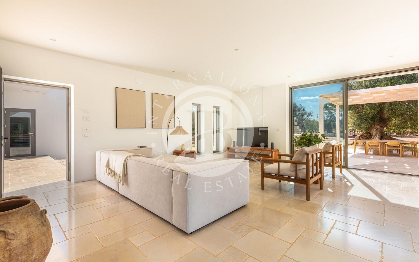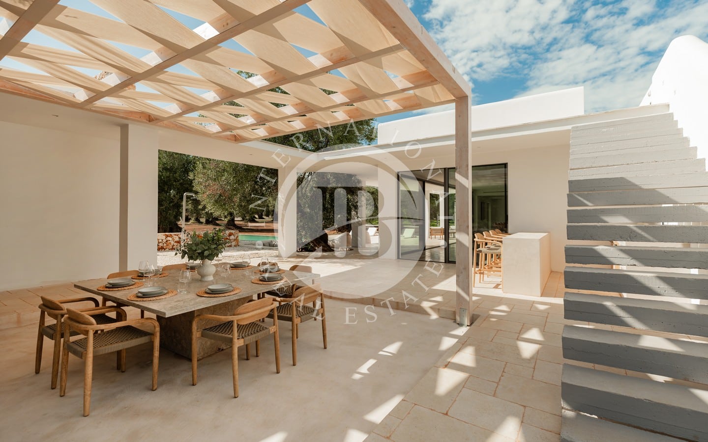 Недавно построенная, вилла выделяется гармонией своих помещений, характеризующихся мягкими цветами, дизайнерской мебелью и изысканными местными материалами, которые идеально сочетаются с окружающим ландшафтом. Светлая гостиная открытой планировки дополнена большими раздвижными окнами с видом на сад и бассейн, кухонным островом из каменной кладки и травертина, полами из полированного камня Trani и деревянной мебелью ручной работы. Спальная зона включает главную спальню с ванной комнатой, украшенной плетеной и деревянной мебелью.