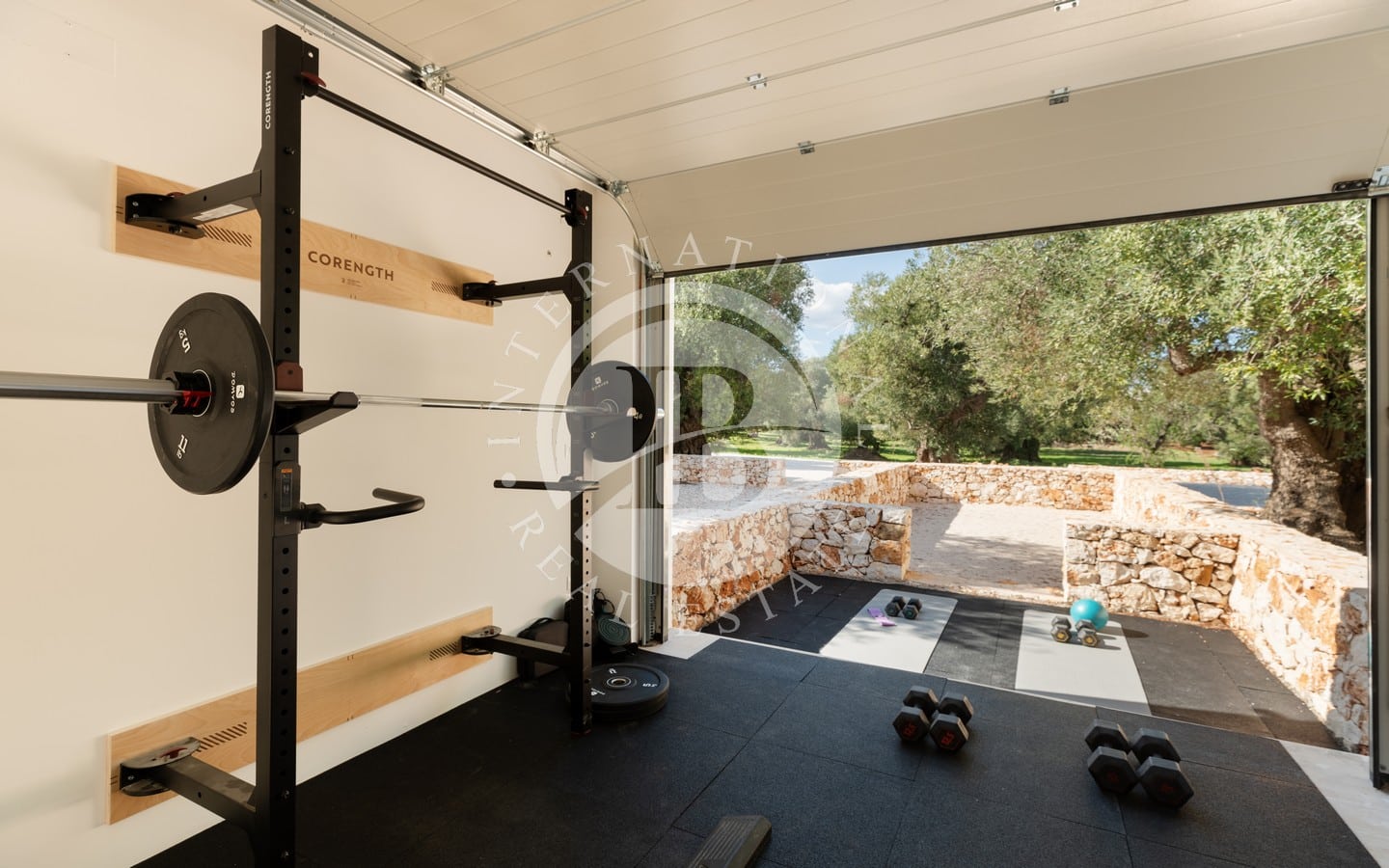 Рядом с бассейном находится солярий и открытая частная зона с каменными диванами и центральным мангалом, где можно насладиться моментами отдыха в любое время года. Особняк дополняют панорамная терраса с видом на поместье и оливковую рощу, фитнес-зона в окружении зелени и изысканные затененные пространства, предназначенные для общения, включая открытую гостиную с кирпичной кухней и большим столом.