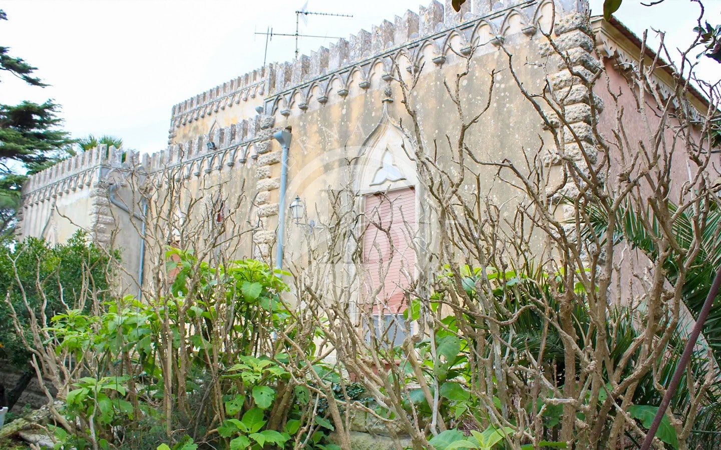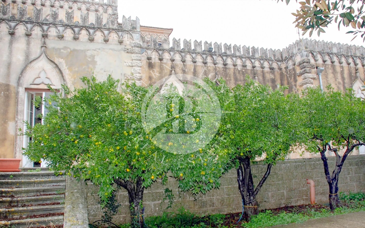 Трое из четырех кованых ворот, через которые можно попасть на территорию виллы, поддерживаются башенками с акротериями, а главные ворота опираются на две старинные оригинальные башни, которые когда-то использовались в качестве сторожевых постов. Эти башни с остроконечными арочными окнами и декоративными фризами выходят на главную улицу, создавая величественный и впечатляющий вход.